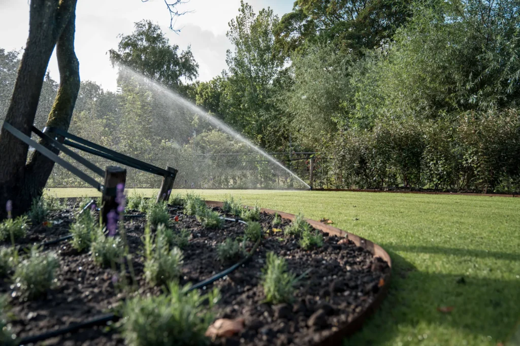 Bij de renovatie van een tuin in Waardenburg hebben wij voortgeborduurd op de bestaande beregeningsinstallatie. Voor het gazon zijn pop-up sproeiers toegevoegd die zorgen voor een egale en efficiënte beregening. De borders en hagen zijn uitgerust met druppelslangen, zodat ook deze beplanting altijd de juiste hoeveelheid water krijgt. Door de nieuwe onderdelen naadloos te laten aansluiten op het bestaande systeem, is een slimme en duurzame oplossing ontstaan. Het resultaat is een perfect verzorgd gazon en gezonde borders, zonder extra onderhoud voor de klant.